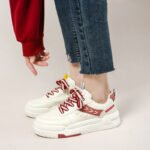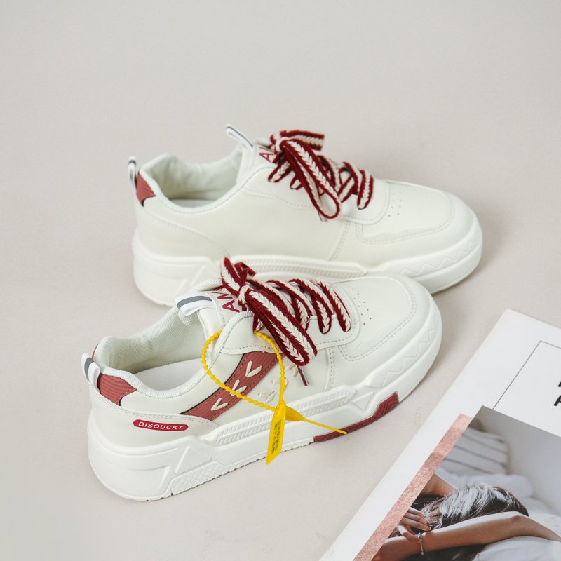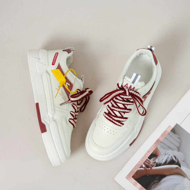 These stylish chunky sneakers feature a clean white base accented with bold red details and matching laces, delivering a vibrant and modern look. Made with premium synthetic leather, the upper is soft, durable, and breathable. The thick cushioned sole provides excellent support and shock absorption, ensuring a comfortable walking experience. Whether for daily commutes, casual outings, or trendy streetwear, these sneakers will elevate your style effortlessly.