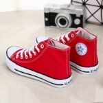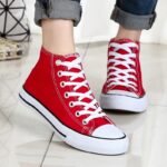“These classic red high-top canvas sneakers are the ultimate blend of timeless style and everyday comfort. Featuring a durable canvas upper, breathable design, and a sturdy rubber sole, they are perfect for casual outings or completing your streetwear look. With their unisex appeal and versatile design, these sneakers are a wardrobe essential, offering both style and functionality for any season.”