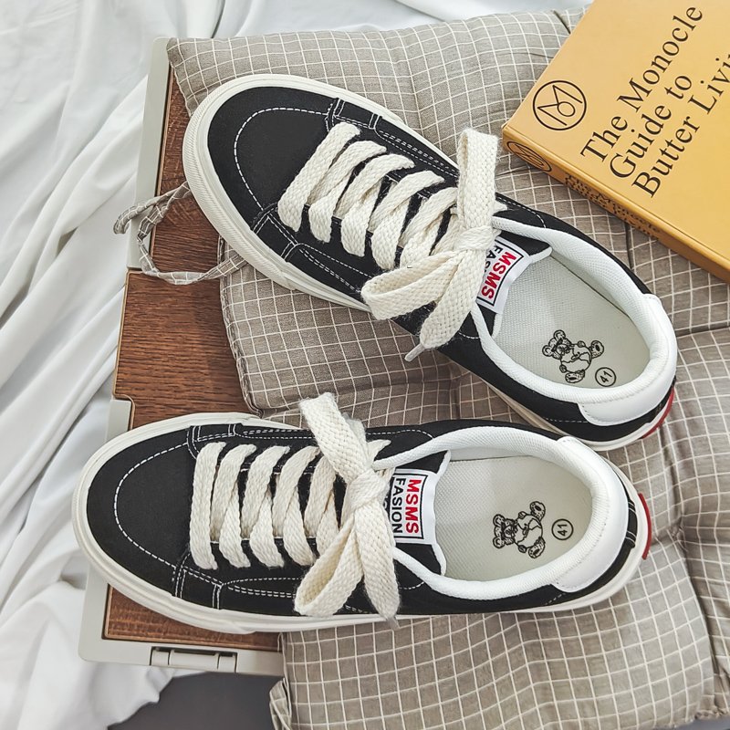 Niche Plaid Low-Top Canvas Shoes with round Toe New Student Street Shot Skateboard Casual Shoes-vt77