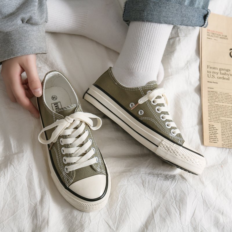 Product Name: Retro Army Green Low-Top Canvas Shoes