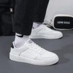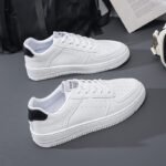 These classic all-white casual sneakers feature a minimalist and stylish design, combining comfort and practicality to suit any occasion. The upper is crafted from high-quality PU leather, making it soft, durable, and easy to clean. The perforated design on both sides enhances breathability, keeping your feet dry and comfortable for long periods. The lightweight rubber sole offers excellent anti-slip performance and durability, ensuring confident and steady steps with every stride.