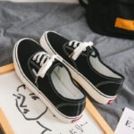 These low-top black canvas shoes feature a minimalist design, combining a classic black upper with white laces and detailed stitching, perfectly blending fashion and retro style. The upper is crafted from high-quality canvas material, ensuring breathability and lightweight comfort for all-day wear. The sturdy rubber outsole is durable, anti-slip, and provides excellent foot support for stability with every step. Whether for casual wear, campus style, or street fashion, these canvas shoes effortlessly match any outfit, making them a must-have wardrobe essential.