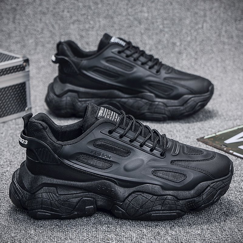 These all-black retro chunky sneakers combine fashion and comfort, designed for consumers who value both style and functionality. The upper is made from high-quality synthetic leather and breathable mesh, offering excellent durability and ventilation. The sleek all-black design exudes understated luxury, while the chunky sole adds height and provides exceptional cushioning, ensuring comfortable wear for daily commutes or athletic activities.
