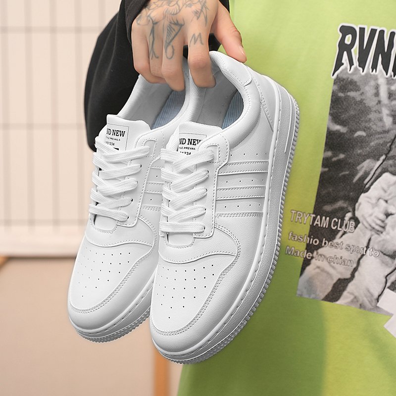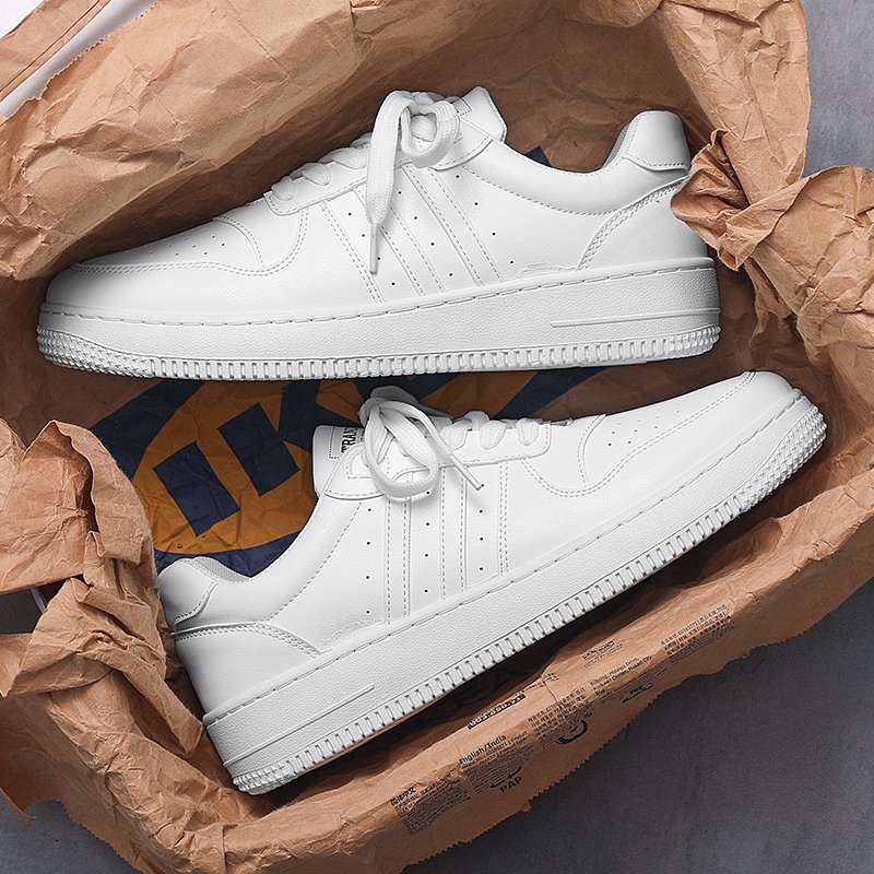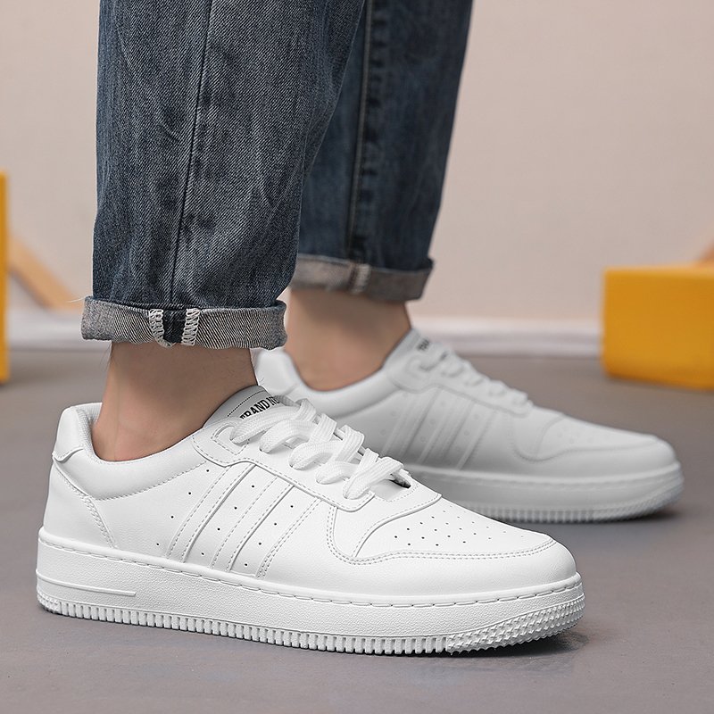 These minimalist and stylish all-white classic sneakers perfectly combine modern design with comfortable wear, making them an essential item for everyday outfits. The upper is crafted from premium PU leather, offering a delicate texture, durability, and easy maintenance. The breathable lining ensures your feet stay dry and comfortable for extended wear. The non-slip and wear-resistant rubber outsole provides excellent stability and grip, allowing you to walk confidently in any setting. With sleek lines and classic triple-stripe accents, these sneakers showcase a refined sense of style, suitable for sports, casual wear, or street fashion, effortlessly complementing any look.