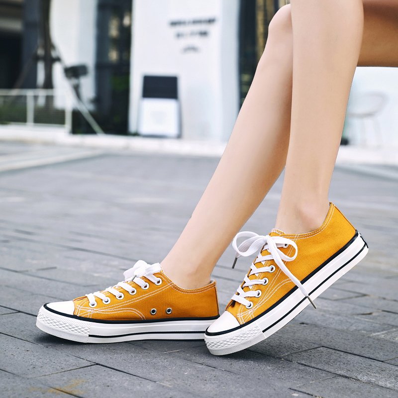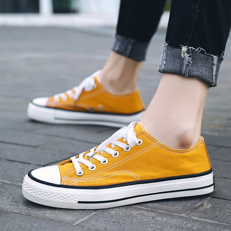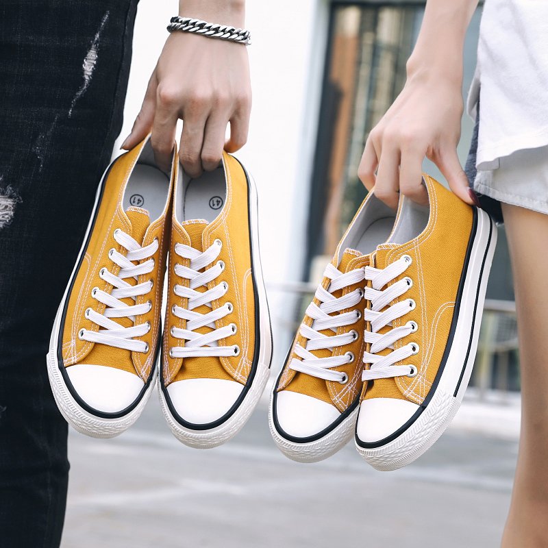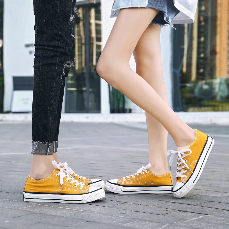 These classic yellow canvas shoes are made of high-quality canvas material, providing a soft, comfortable, and highly breathable experience, ideal for long hours of wear. The simple and elegant design combined with a durable rubber sole offers reliable anti-slip protection for your daily activities. Whether for casual streetwear, campus life, or outdoor adventures, these versatile canvas shoes can easily match any style, adding a touch of fashion to your look. The delicate stitching details on the upper and sole showcase exceptional craftsmanship, allowing you to express your unique style effortlessly in any setting.